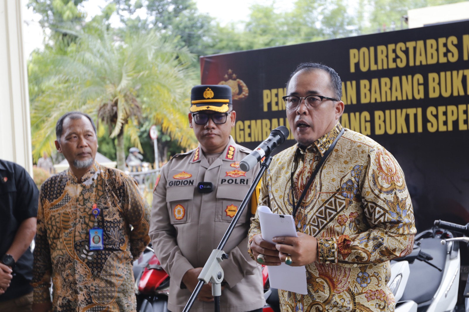 Sebelumnya, Kapolrestabes Medan Kombes Pol Gidion Arif Setyawan mengungkapkan kegiatan hari ini adalah pemusnahan atau penghancuran ratusan senjata tajam dan pengembalian barang bukti sepeda motor kepada pemiliknya.