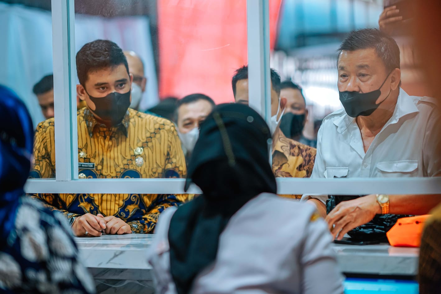 Peresmian keempat Loket Pelayanan Pembayaran Pajak Daerah UPT dipusatkan di UPT I Jalan Turi, Kecamatan Medan Kota ditandai dengan pengguntingan pita yang dilakukan Wali Kota Medan Bobby Nasution, Kamis (9/6).