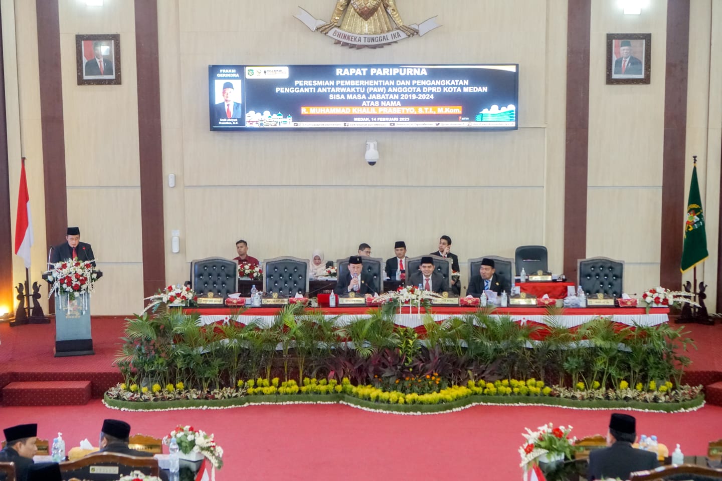Sebelumnya, Sidang Paripurna Istimewa yang dipimpin Ketua DPRD Hasyim SE ini melantik R Muhammad Khalil Prasetyo STI MKom menjadi anggota DPRD Medan sebagai Pengganti Antar Waktu (PAW) DPRD Medan sisa periode 2019 -2024 setelah Anggota DPRD Medan dari Fraksi Gerindra (F-Gerindra) Sahat B Simbolon meninggal dunia beberapa waktu yang lalu.
